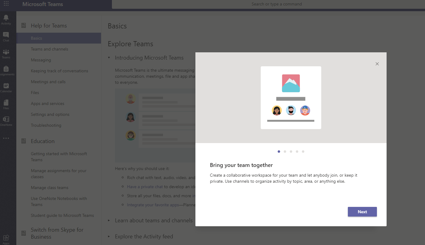 When you first access teams you will be met by a welcome screen taking you through the basics of the system. It is worth while going through these slides and watching the video at the end to familiarise yourself with the system.